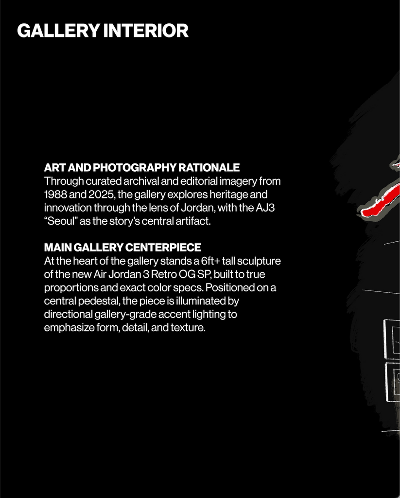 Working closely with my Creative Director, fabricators, and the Jordan Brand team, I translated these cultural references into physical form. I concepted and built a larger-than-life shoebox, a Korean-inspired living garden, and sculptural trees, bringing warmth, movement, and storytelling to the space. Gallery walls highlighted key Korean moments, Jordan milestones, and Olympic athletes, creating a layered, sensory experience that honored both heritage and sneaker culture. Every element—from materials and textures to neon signage and interactive features—was designed to make guests feel fully immersed in a space alive with energy, memory, and cultural resonance.